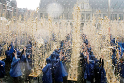 Around 1500 students put simultaneously mentos mints in bottles of Coca Cola Light, during a wold record attempt of the so-called Mentos fountains, on April 23, 2008, on Ladeuzeplein square in Leuven. AFP PHOTO / BELGA / SVEN DILLEN *** BELGIUM OUT ***