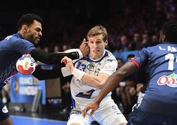 Islands Olafur Andres Gudmundsson i åttondelsfinalen mot Frankrike i handbolls-VM i Frankrike. Frankrike besegrade Island med 31-25.
